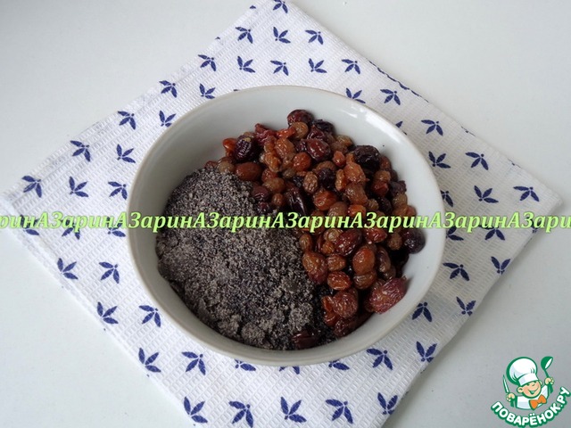 Мак измельчить в кофемолке. Изюм распарить и обсушить.