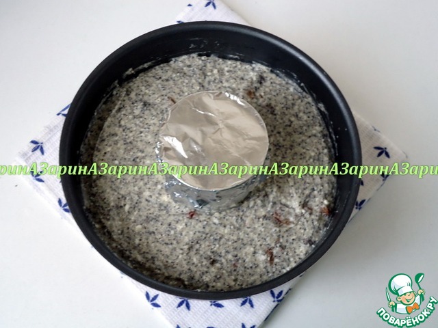 Выложить тесто в форму d=18 см с отверстием. Разровнять.