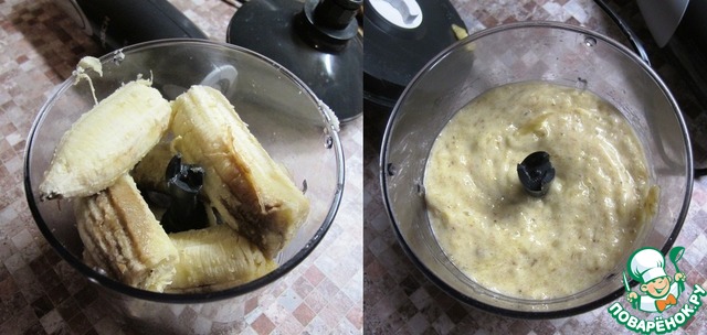 Переспелые бананы пюрировать блендером или размять толкушкой. Яблоки почистить и нарезать дольками.