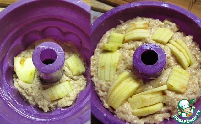 | Яблочная шарлотка пригодная для постного питания. В оригинале вместо растительного масла используется оливковое. Шарлотка нежная, пористая, чуть влажноватая, хорошо поднимается. По вкусу практически не отличается от бананового хлеба, приготовленного на сливочном масле или сметане. |