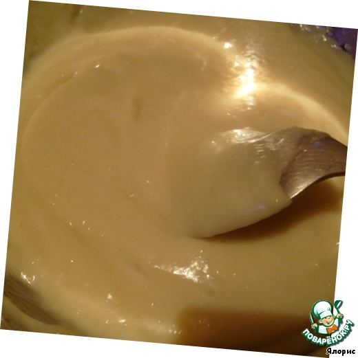В растопленное масло кладем сахар, взбиваем, добавляем яйца, взбиваем вновь.