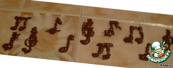 Для украшения растапливаем шоколад, наносим узоры на пергамент - убираем в холод. Я делала такие украшения всего второй раз в жизни, по способу Жени ( Mazarati). Но в этот раз вышло не так ровненько. Вот в чем мои ошибки: рисунок лучше предварительно намечать карандашом на бумаге; дырочку не выбрать ОЧЕНЬ тонкую в насадке - начинает все закручиваться кружевами вместо прямых линий; слоев надо делать несколько - потолще украшения - прочнее, проще с ними работать. Мои после холодильника начали таять на глазах...