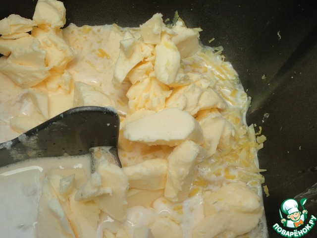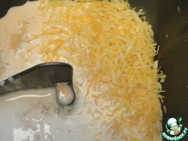 Теперь очередь муки и разрыхлителя. В моей ХП (как я писала неоднократно) нет режима "Пресное тесто", поэтому я ставлю на программу "Дрожжевое тесто" и выключаю через 15 минут.