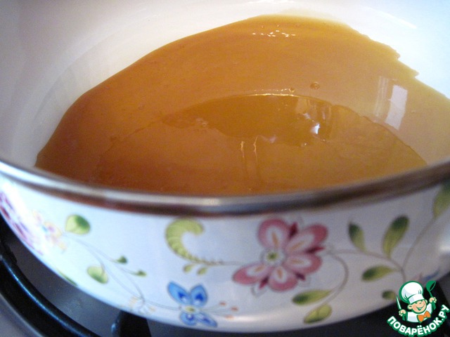 В кастрюлю вылить мед и нагреть его до жидкого состояния.