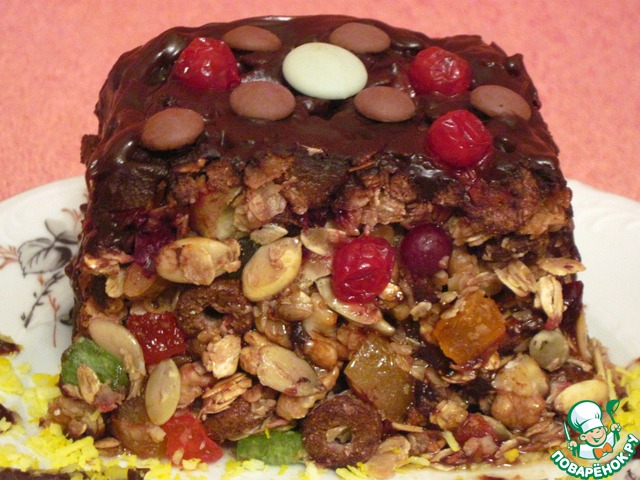 Кекс с овсяными хлопьями, тыквенными семечками, клюквой и сухофруктами