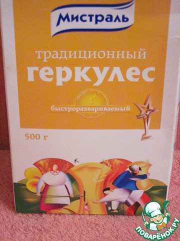 Для данного десерта потребуются хлопья геркулес ТМ "Мистраль" быстроразвариваемые.