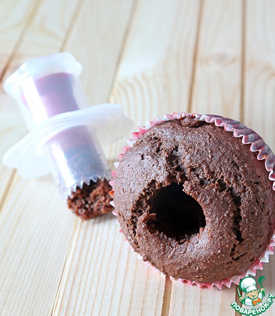 В центре остывших маффинов, используя специальные приспособления или просто маленькую ложку или нож, аккуратно вынимаем мякоть...