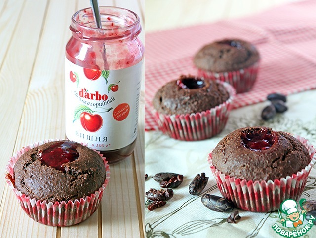 Полезные шоколадные маффины с вишневым конфитюром