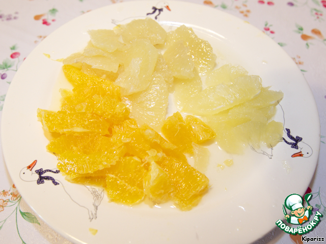 Итак, приготовим сначала начинку, очистим все наши цитрусы от кожуры и пленок.