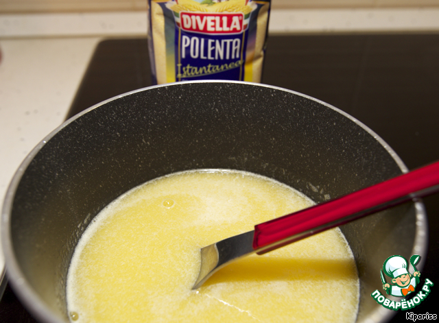 Далее взбить цитрусы в блендере вместе с сахаром, довести до кипения и добавить поленту или кукурузную муку.