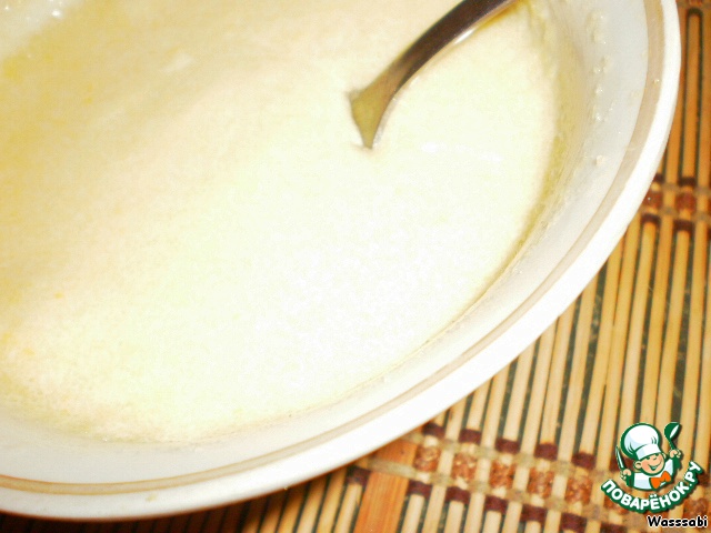 Желтки хорошо растереть с сахаром, влить растопленное сливочное масло, перемешать.
