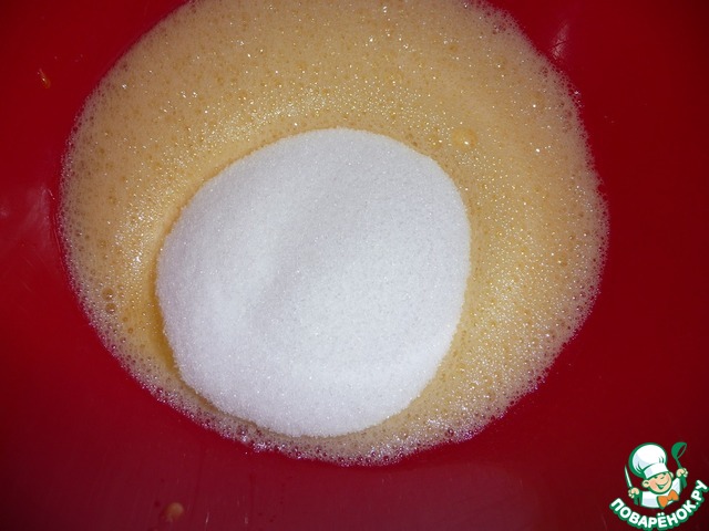 Яйца взбить в крепкую пену.