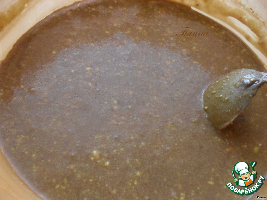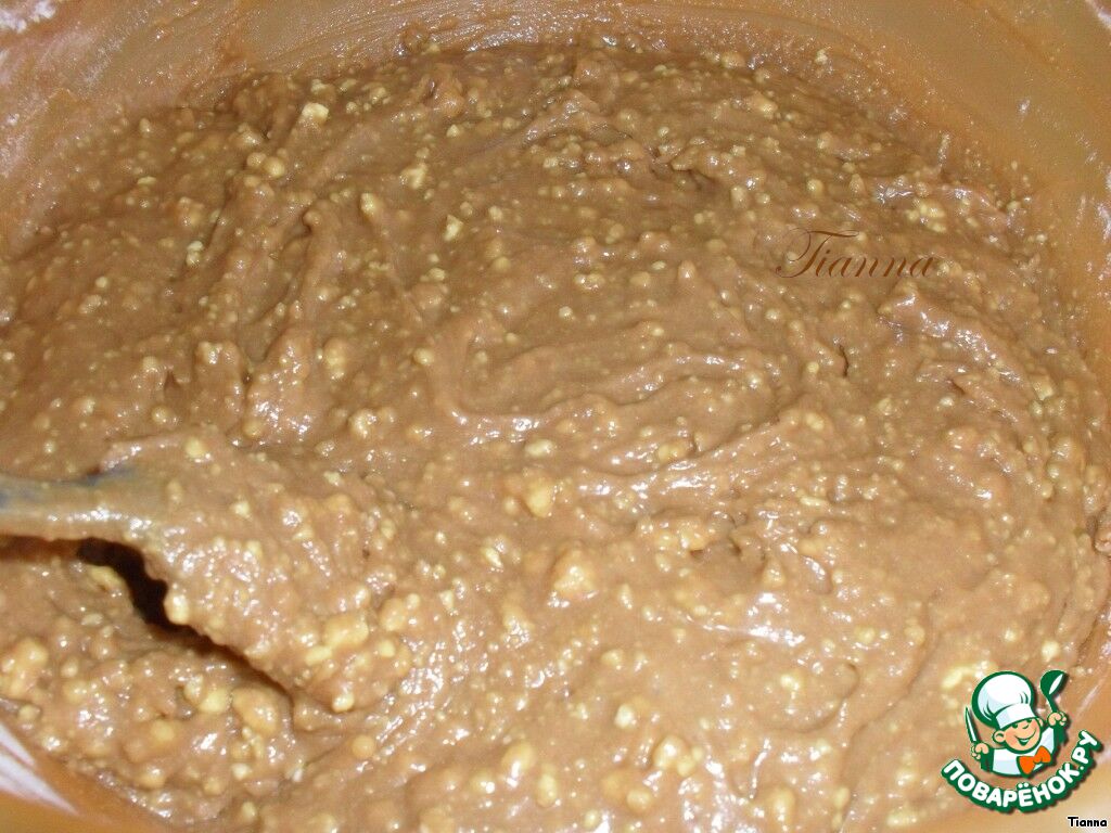 Добавить к массе измельченные орехи и пудинг, смешанный с крахмалом.