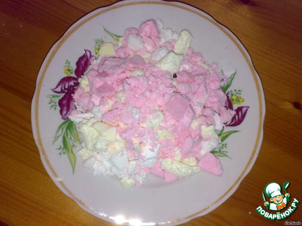 Безе раскрошить не очень мелко, чтобы чувствовались кусочки его в готовой выпечке.