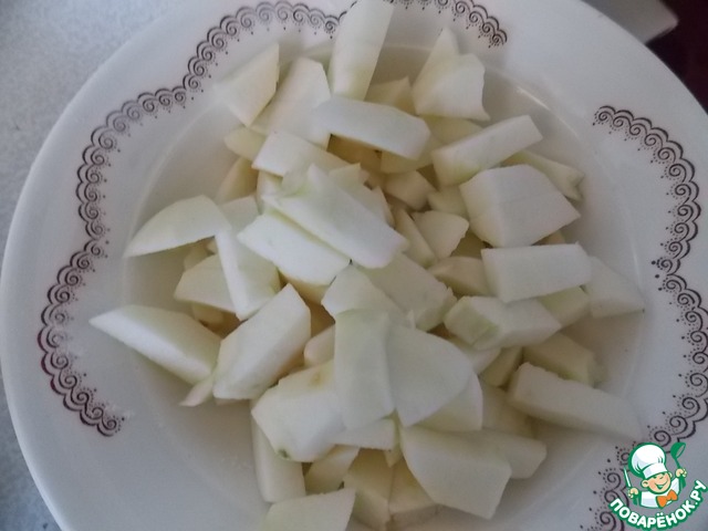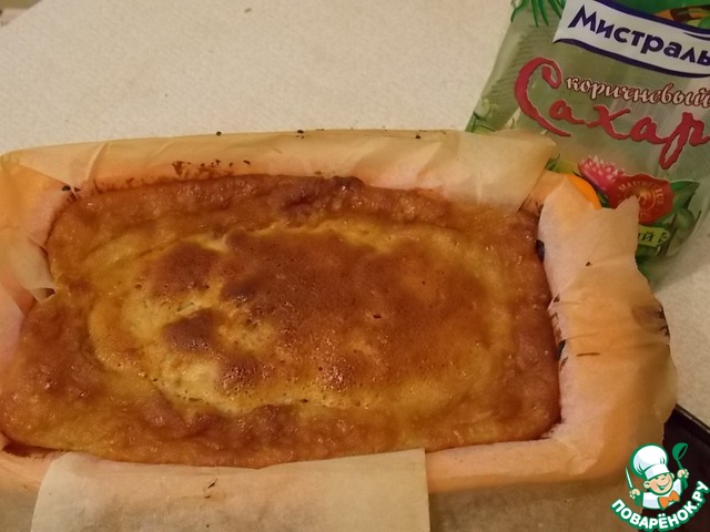 | Честно скажу, что рецепт нашла в инете, и там он представлен как кекс. Но по мне он больше напоминает шарлотку. Такой же сочный и нежный за счет заливки. Которая за счет коричневого сахара от "Мистраль", приобретает карамельный вкус. |