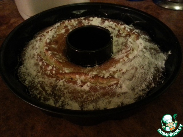 Кексу дать отдохнуть в форме, минут 5. После достать кекс из формы. Посыпать сахарной пудрой.