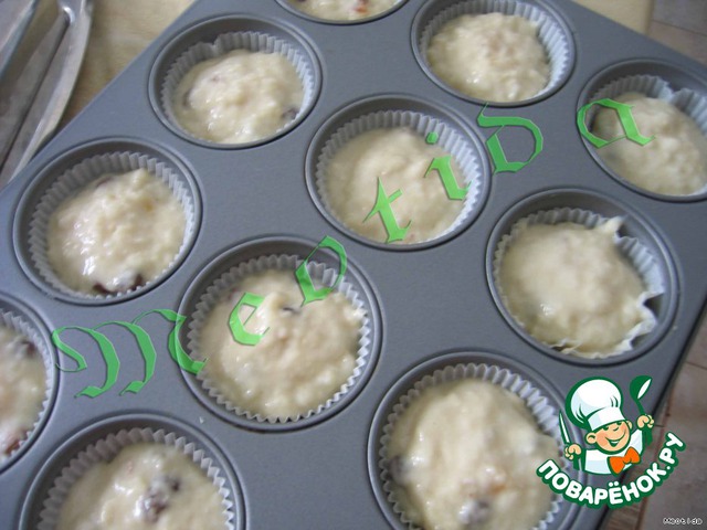 Выпекать в разогретой до 180 С духовке, пока кексики не зарумянятся (20-30 минут).