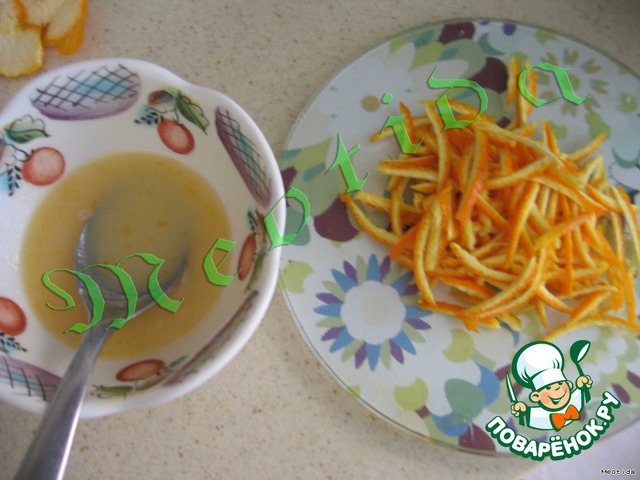 кожуру апельсина нарезать тоненькими полосочками, около 2см длинной