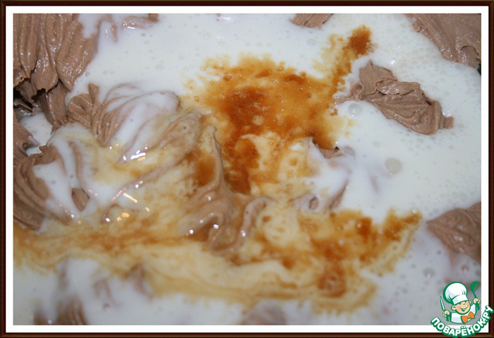 17. Глазурь: Сливки нагреть и налить на измельчённый шоколад. Оставить на 1 минуту.
