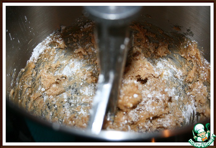 6. Добавьте 1/3 муки и взбейте миксером на самой маленькой скорости.