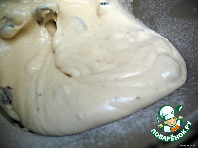 Добавить дрожжи (те, что с медом). Постепенно добавляя взбитые яйца, замесить тесто на небольшой скорости.