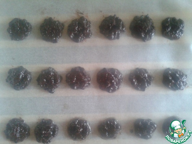 Топим шоколад. На пергаментную бумагу выкладываем точки из шоколада, диаметром примерно 1 см.