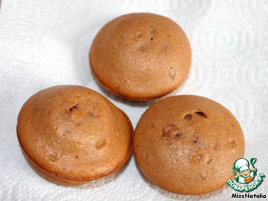 Форму смазать, на дно капнуть тесто (покрыть донышко), выложить начинку, если она планируется, залить тестом примерно на 2/3 формы. У меня поднималось не очень сильно, но в опаске я не наливала много, поэтому они у меня низенькие