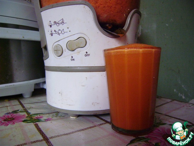 Выдавливаем сок из моркови на соковыжималке или берем готовый