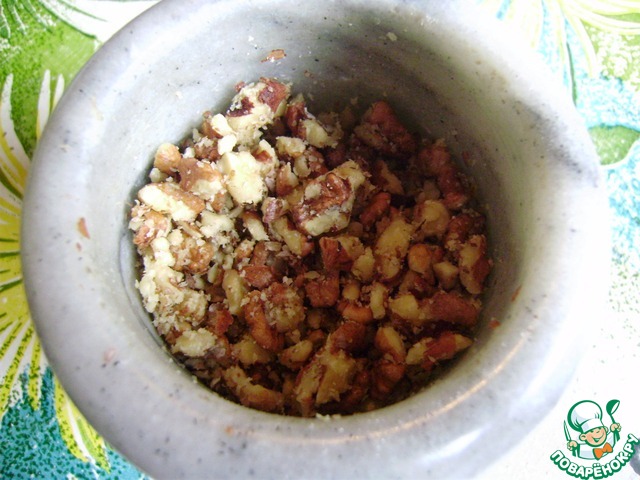 Орехи слегка измельчаем в ступке или нарезаем ножом.