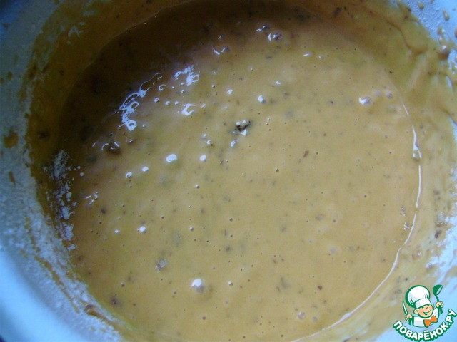 Смешиваем сухие ингредиенты с жидкими. Добавляем орехи.