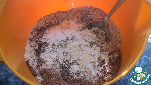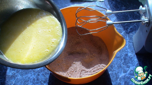 В сухие ингредиенты влить яичную смесь, перемешать.