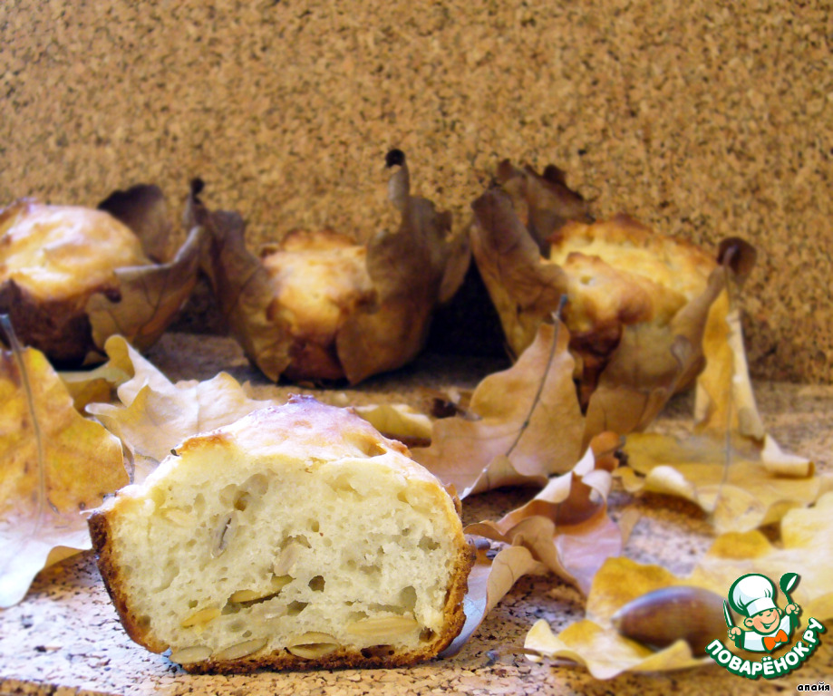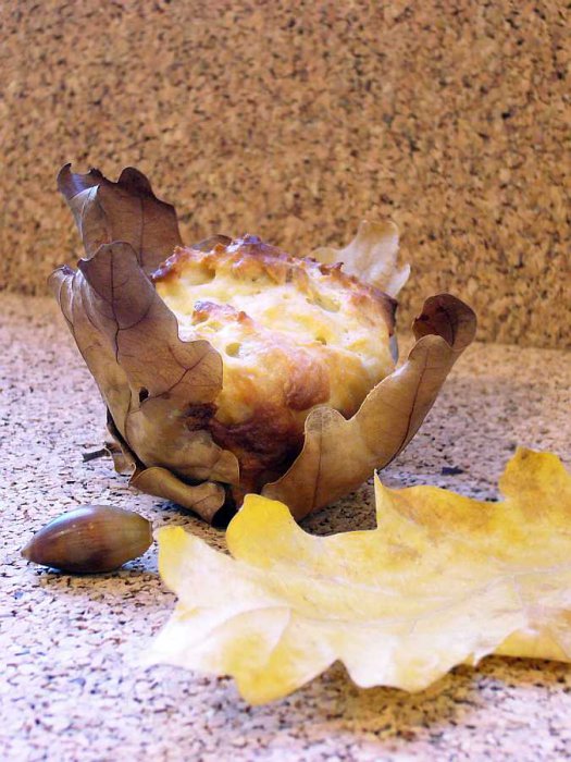 Но мне этого показалось недостаточно для конкурса. И я решила запечь кексы в листьях. Я собрала в лесу листья, промыла их, просушила и уложила в форму. Заполнила формочки с листьями тестом.
