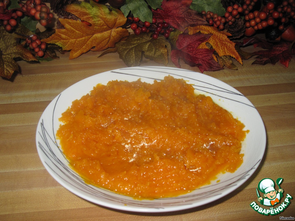 Размягчаем вилкой тыкву до состояния пюре и даем остынуть.