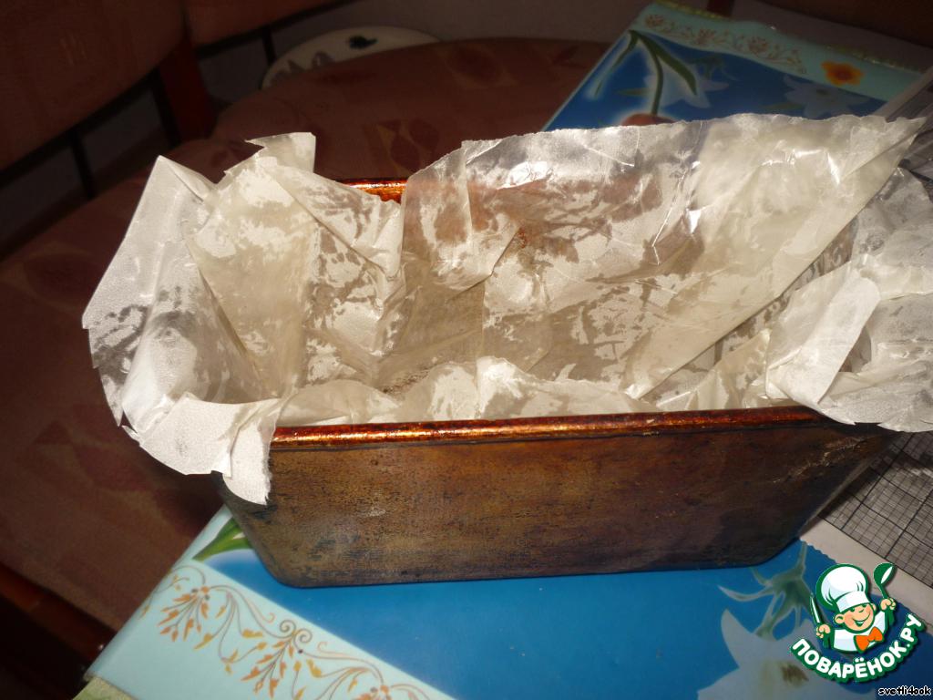 Форму для запекания смазать маслом, выложить пергаментом и наполнить подготовленной смесью.