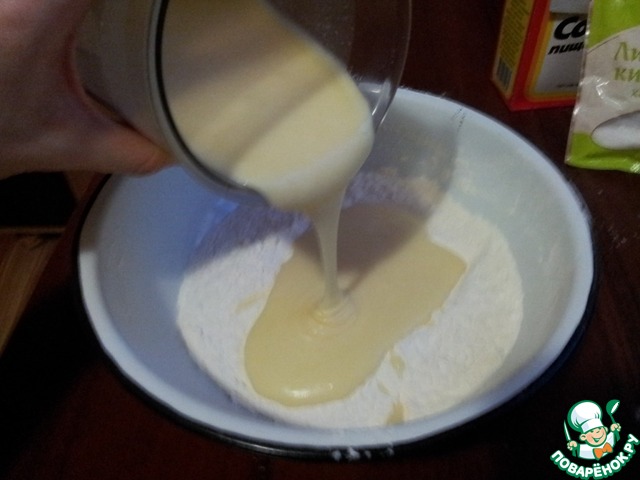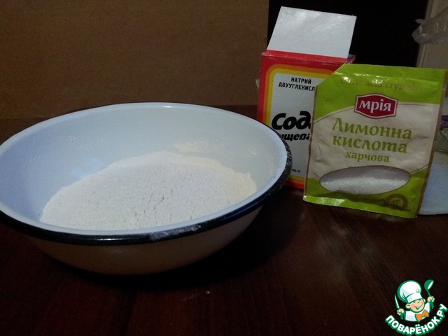 Добавить в нее соду и лимонную кислоту. Хорошо перемешать