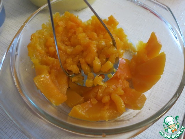Приготовленную на пару тыкву пюрируем.