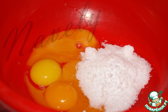 Тем временем, отделяем белки от желтков, желтки смешиваем с фруктозой
