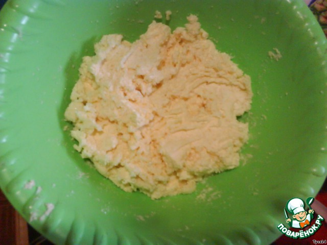 Добавить разрыхлитель и муку. Замесить не густое тесто. Выложить в смазанную маслом форму и выпекать при 180 градусах 30-45 мин.