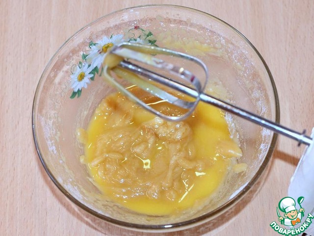 По одному добавляем яйца, каждый раз тщательно взбивая.