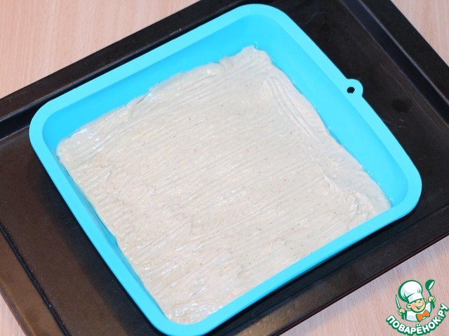 Выстилаем форму бумагой для выпечки или берем силиконовую формочку (19 * 19), слегка смазываем маслом и выкладываем тесто, печём при t 190°С 20-30 минут или до сухой лучины.