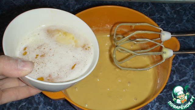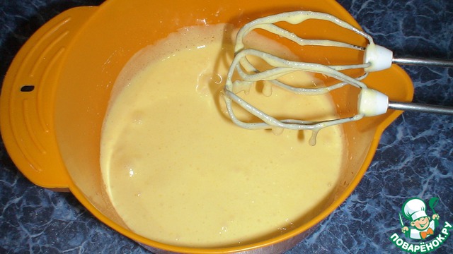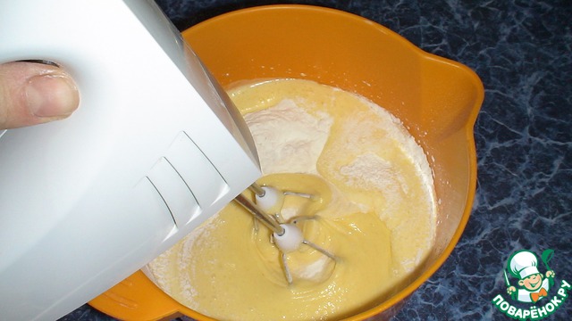 Просеять муку с разрыхлителем. В несколько приемов ввести муку в яичную смесь.