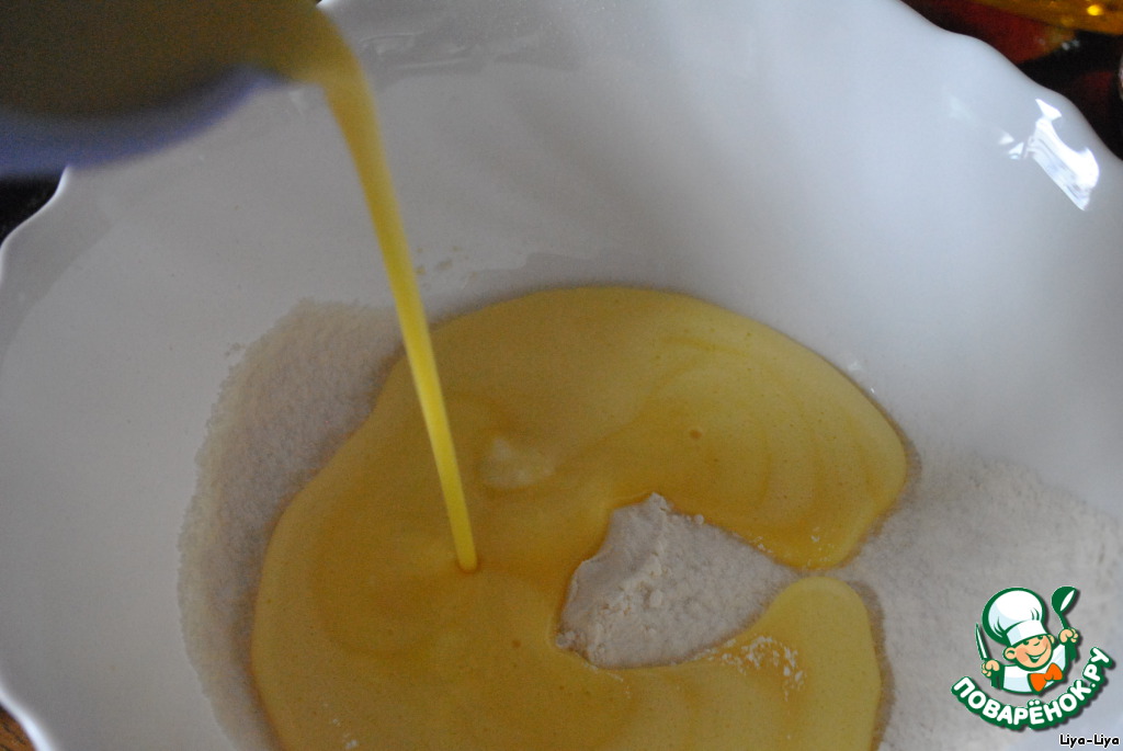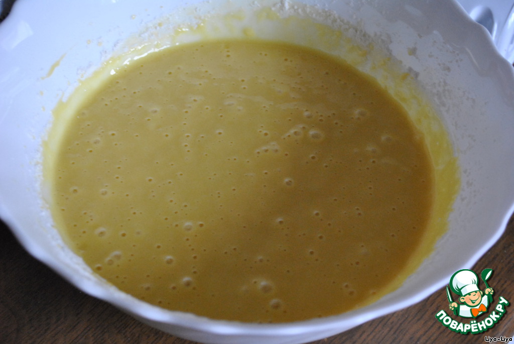 Перемешиваем минутку. Получается жидкое тесто.