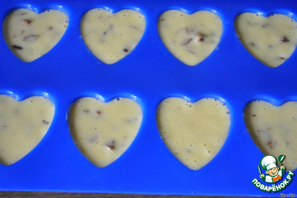 Режем мелкими кубиками инжир и орехи. Вмешиваем в тесто, без фанатизма - раз-два и быстренько по формам.