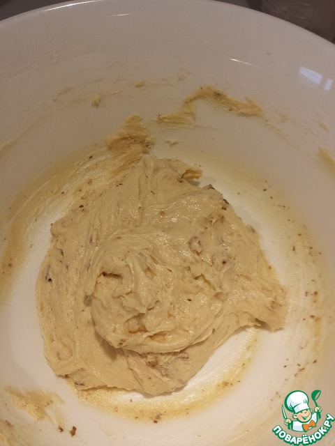 В основное тесто добавить орехи и ликер.