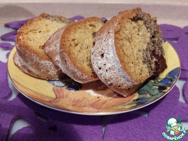 От общего количества теста отделить 1/3 или 1/4 часть, добавить в него мак и перемешать.
