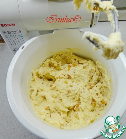 Это желательно делать побыстрее, просто помешивая, не слишком растирая массу, чтобы сохранить пышность белков.