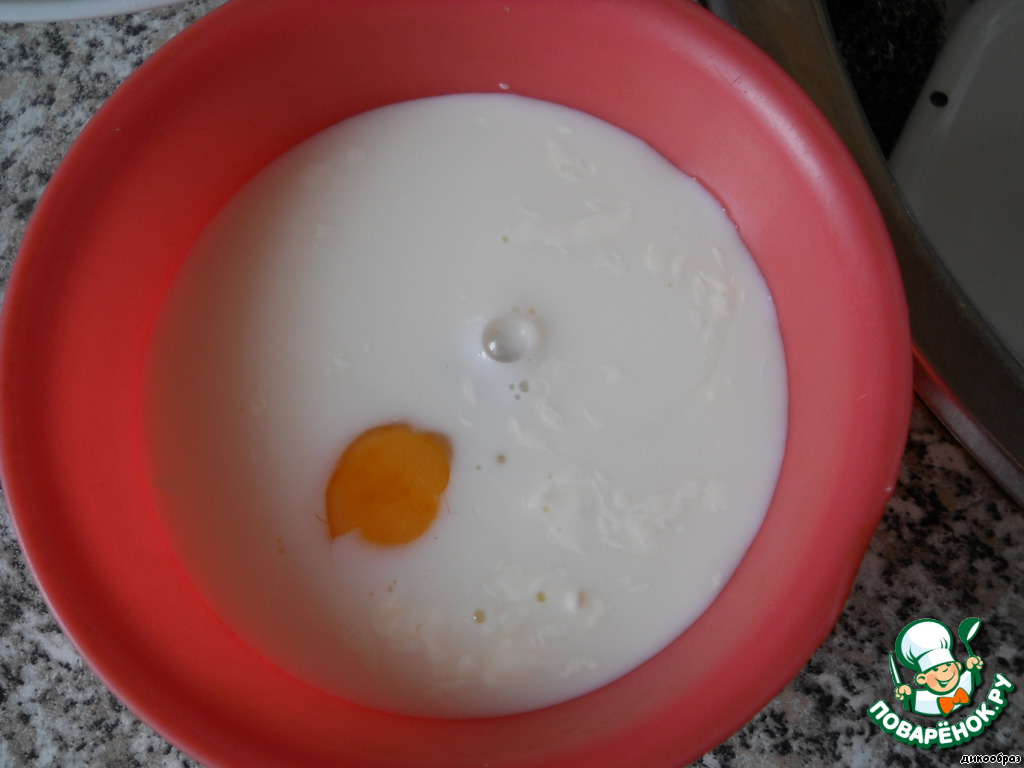 Взбить растертое яйцо с молоком и растопленным сливочным маслом.