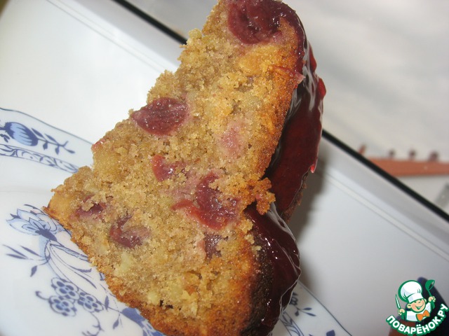 Дать остыть и посыпать сахарной пудрой. Я сделала желе из вишневого сока и полила им кекс.