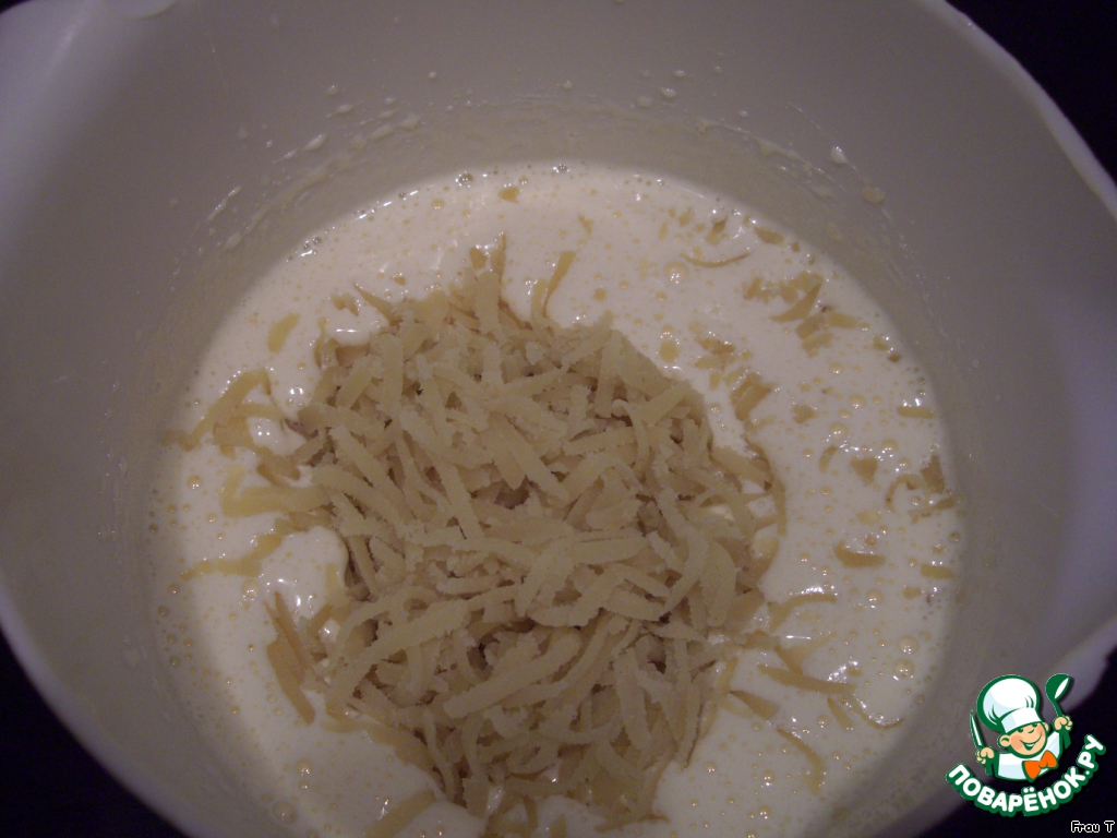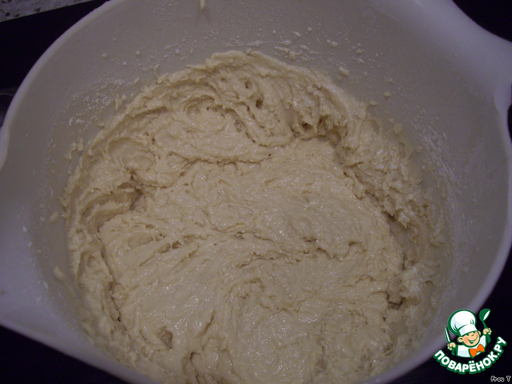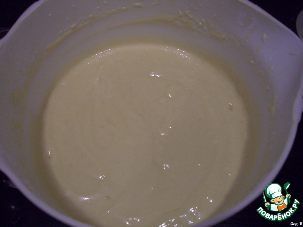 Смешать муку, крахмал и разрыхлитель, просеять в тесто.