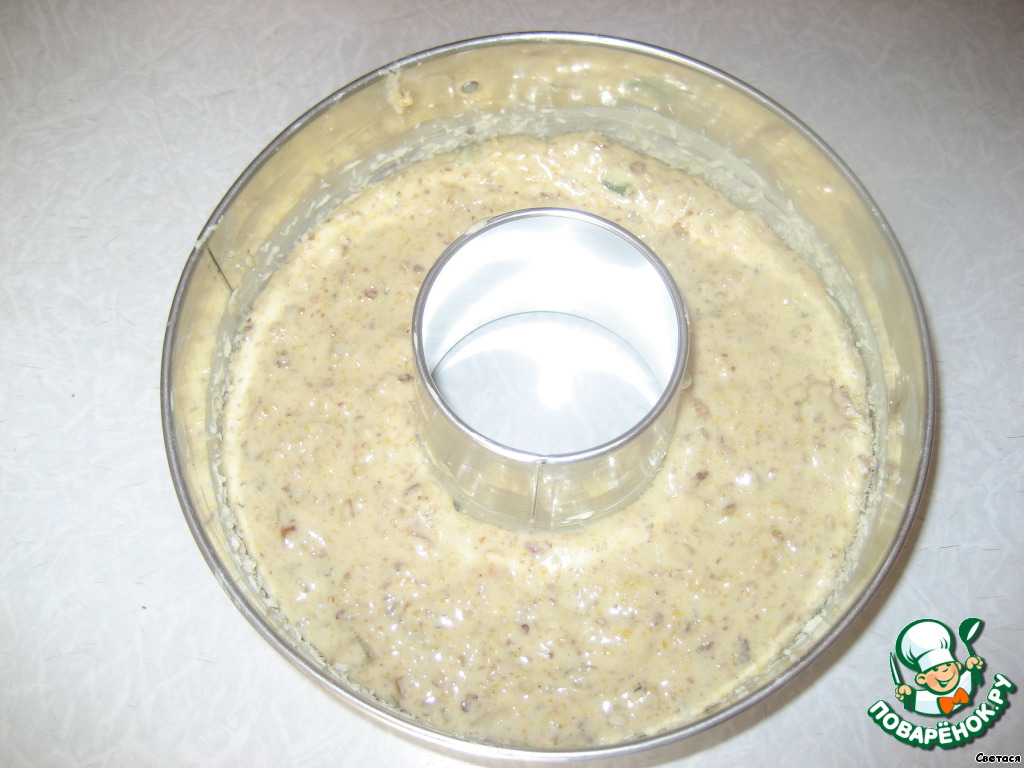 Форму смазать маслом и посыпать панировочными сухарями. Тесто ложкой выложить в форму. Выпекать в разогретой духовке 30-35 минут при 180°С.